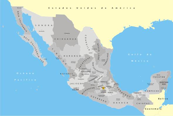 Conforme a la Constitución Política de 1917, México es un Estado federal que se gobierna bajo la forma de una república. El territorio mexicano está dividido en 32 entidades federativas. De ellas, 31 son estados libres y soberanos a los que se les reconoce el derecho de dotarse de una constitución y cuerpos de gobierno propios. La entidad federativa restante es el Distrito Federal, territorio bajo dominio compartido de la Federación mexicana y los órganos de gobierno locales. Cada Estado se constituye a su vez por municipios, de los cuales hay en todo el país 2,456. Por su parte, el Distrito Federal se integra por 16 delegaciones políticas
