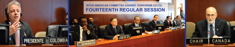 The Inter-American Committee against Terrorism (CICTE) held its Fourteenth Regular Session, February 20-21, 2014 during which the 34 member states of the Organization focused their discussions on the need to strengthen hemispheric cooperation to prevent and combat terrorism in the Hemisphere, with special attention to three aspects: how to counter criminal activities that may exacerbate the threat of terrorism, such as trafficking in drugs, arms and people or money laundering; how to strengthen criminal justice responses to acts of terrorism; and how to enhance the efficiency of CICTE itself and its National Points of Contact.